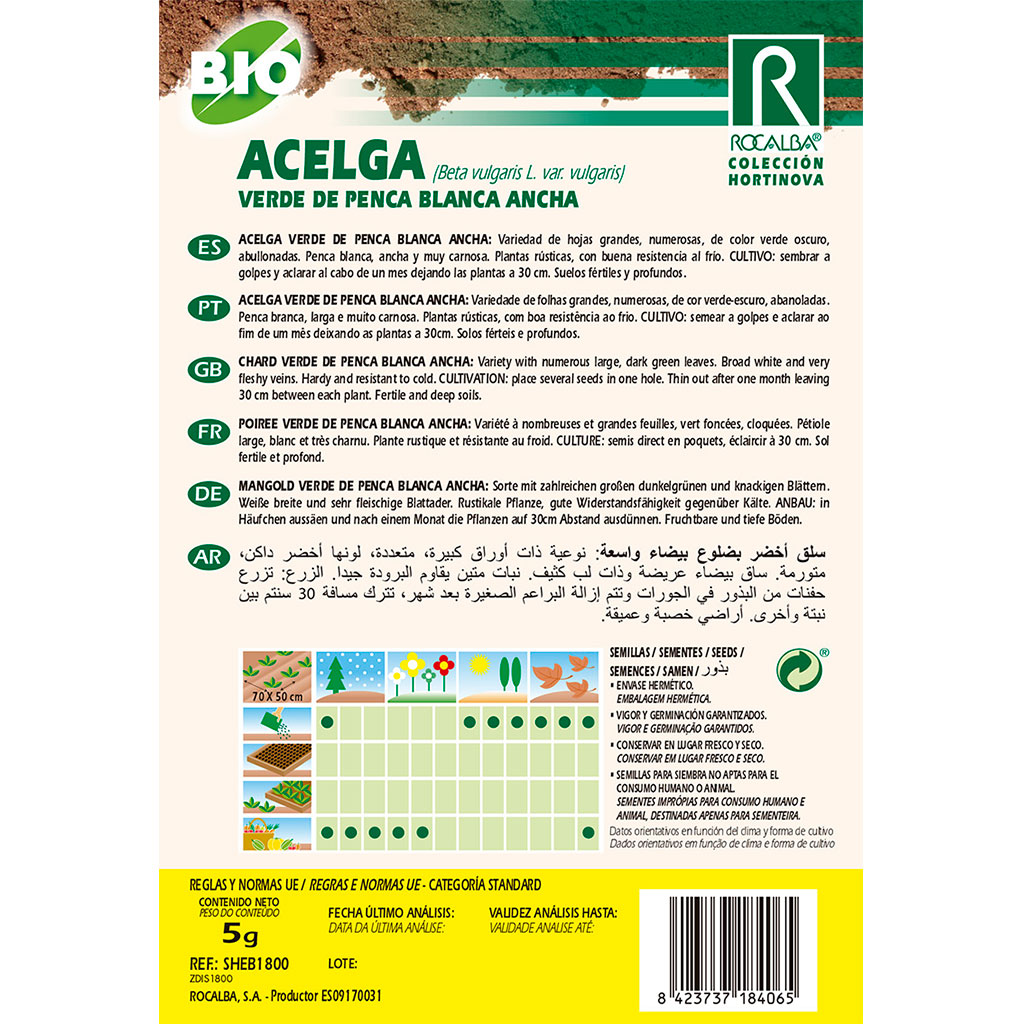 Acelga verde de penca blanca ancha ecológica