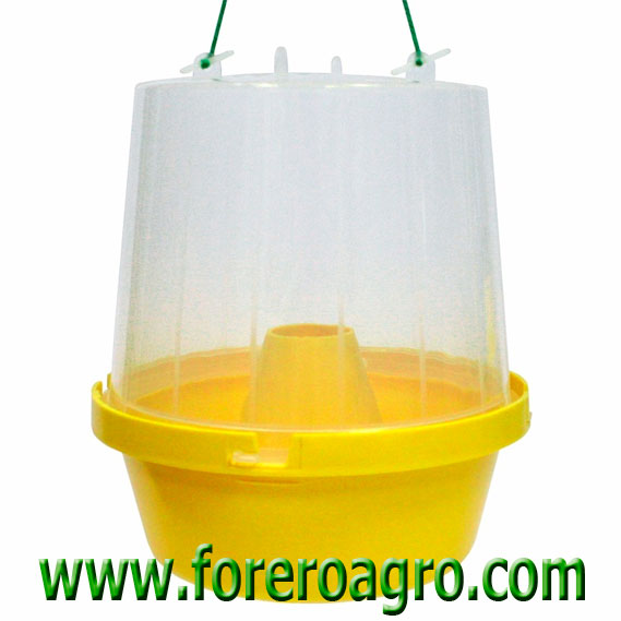 Esta trampa está especialmente indicada para la captura de dípteros. Los cebos pueden ser alimenticios o estar preparados con feromonas, que son mucho más efectivas.