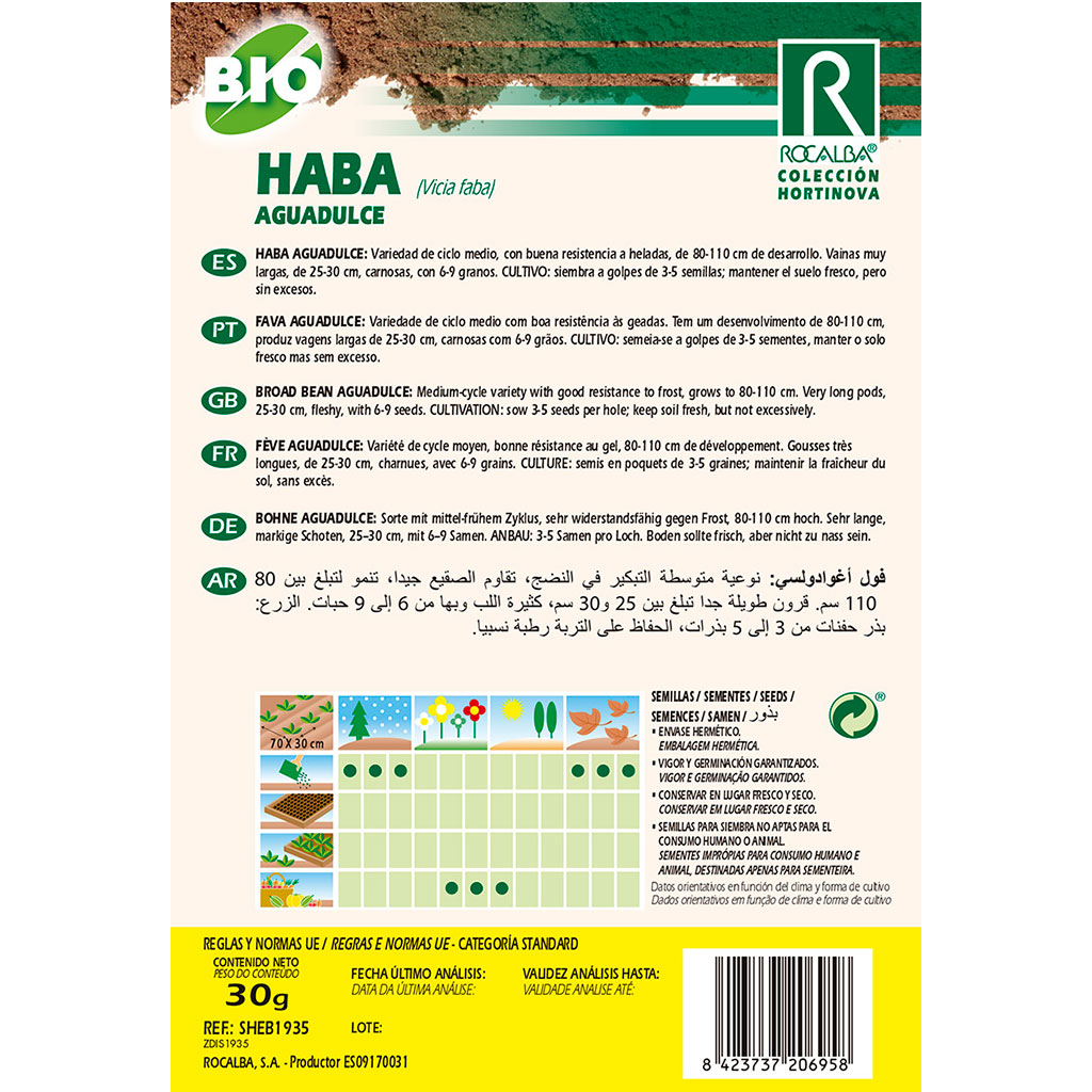 Variedad de ciclo medio, con buena resistencia a heladas, de 80-110 cm de desarrollo. Vainas muy largas, de 25-30 cm, carnosas, con 6-9 granos.