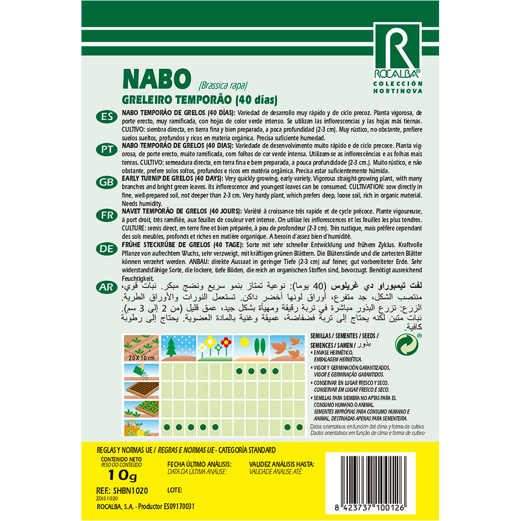 CULTIVO: siembra directa, en tierra fina y bien preparada, a poca profundidad (2-3 cm). Muy rústico, no obstante, prefiere suelos