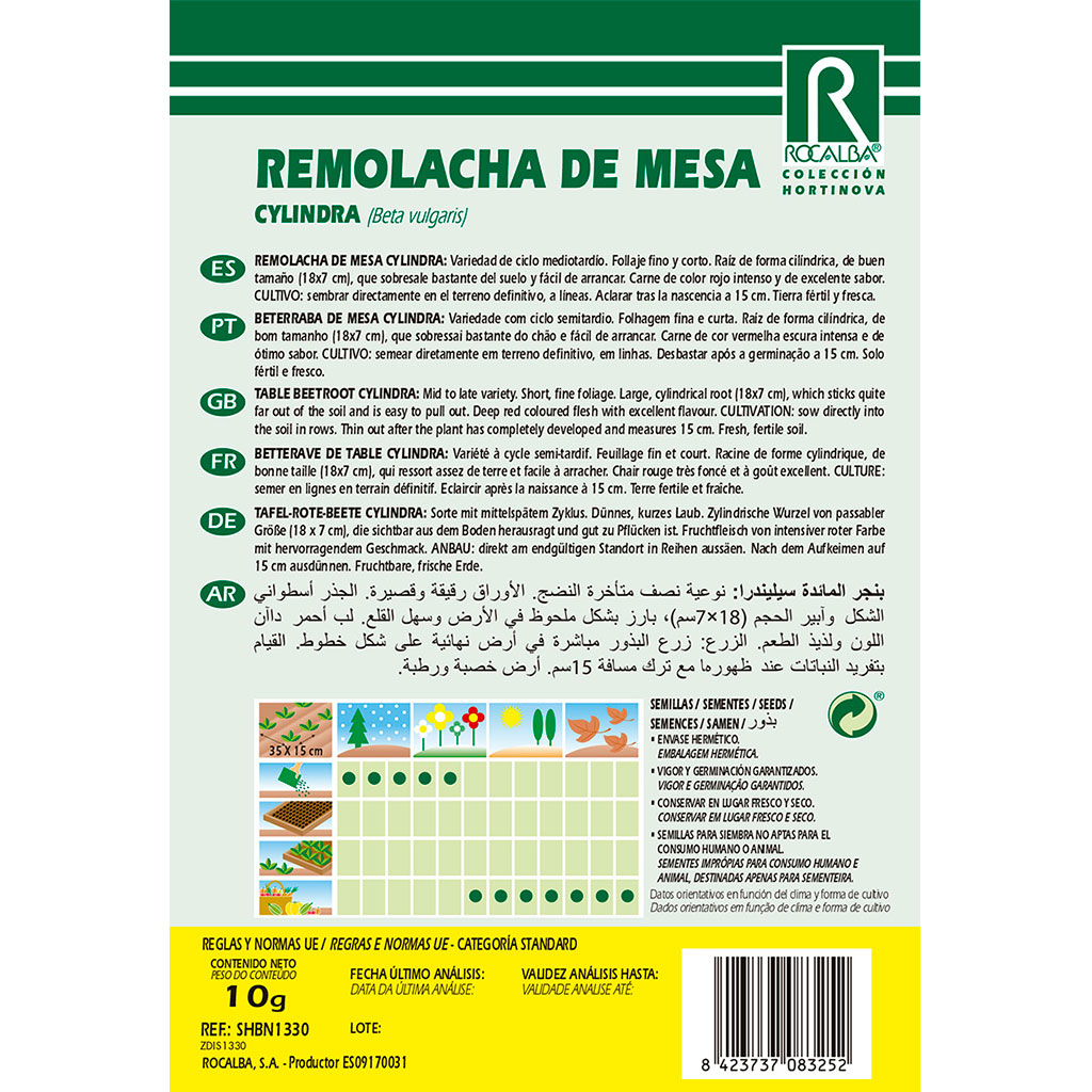 CULTIVO: sembrar directamente en el terreno definitivo, a líneas. Aclarar tras la nascencia a 15 cm. Tierra fértil y fresca.