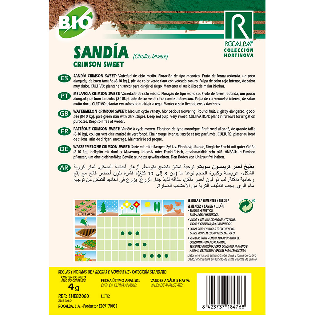 Variedad de ciclo medio. Floración de tipo monoico. Fruto de forma redonda, un poco alargada, de buen tamaño (8-10 kg.), piel de color verde claro con veteado oscuro. Pulpa de color rojo intenso, de sabor muy dulce.