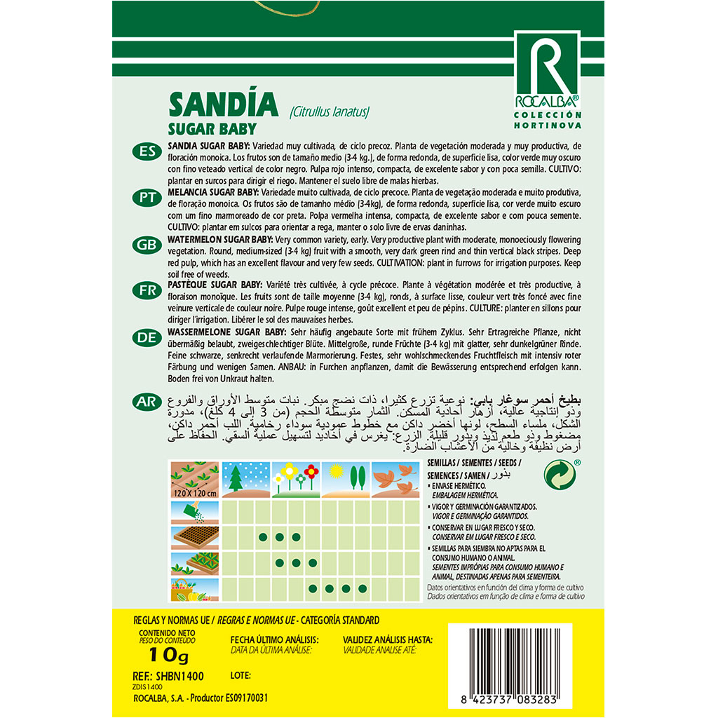 Variedad muy cultivada, de ciclo precoz. Planta de vegetación moderada y muy productiva, de floración monoica. Los frutos son de tamaño medio (3-4 kg.), de forma redonda, de superficie lisa, color verde muy oscuro con fino veteado vertical de color negro. Pulpa rojo intenso, compacta, de excelente sabor y con poca semilla.